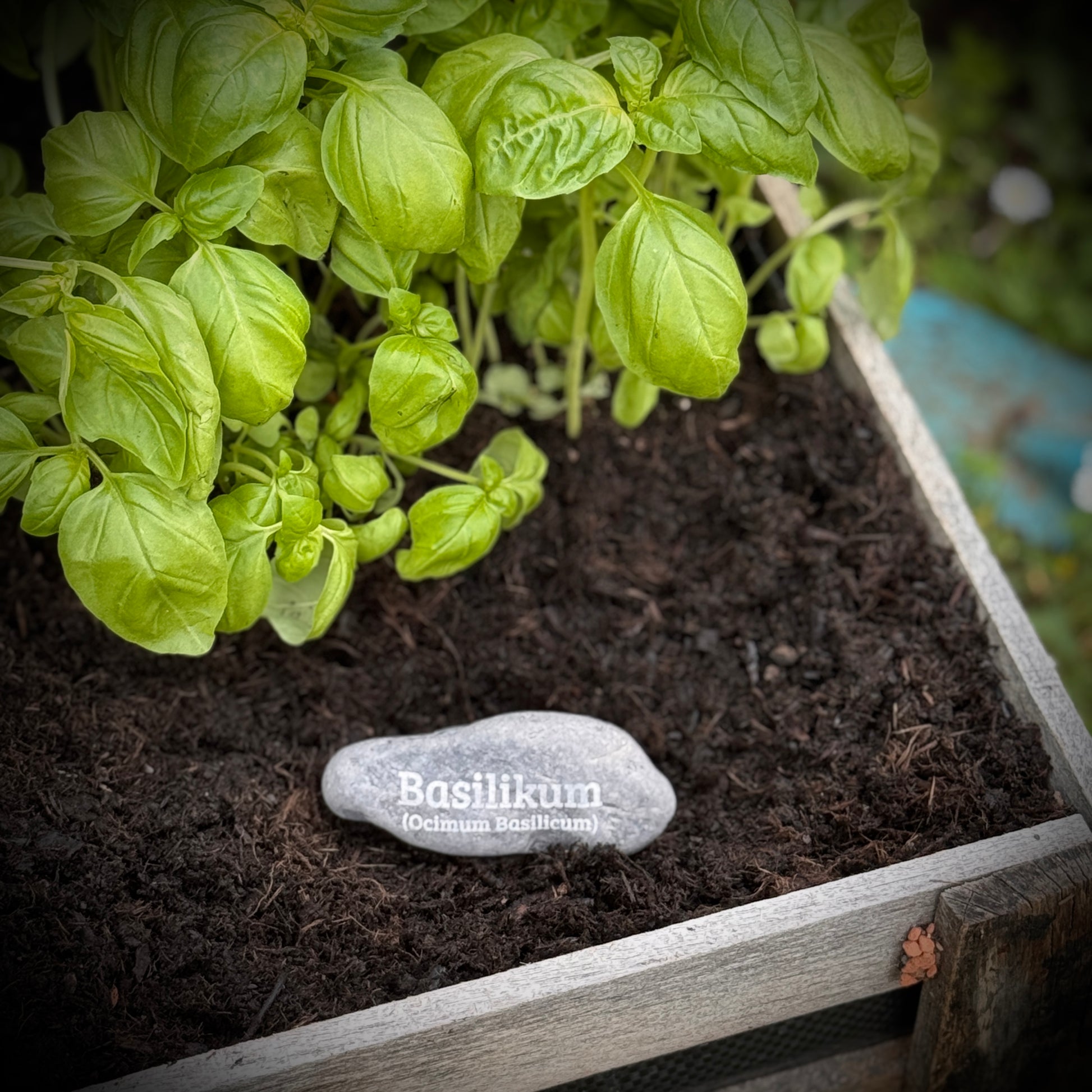 Der König unter den Küchenkräutern verdient einen besonderen Platz – mit diesem gravierten Naturstein wird dein Basilikum stilvoll beschriftet.